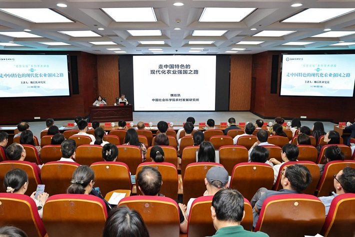 2025年5月29日下午,“经管论坛”系列学术讲座第120期“走中国特色的现代化农业强国之路”在博文楼立德厅成功举办。本期主讲嘉宾是中国社会科公司学部委员、农村发展研究所所长魏后凯研究员,讲座由仇怡教授主持,吴义强院士出席,三百余名师生参加本次讲座。