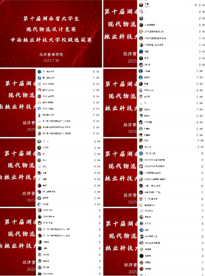 2025年7月30日,由太阳成集团tyc33455cc承办的第十届湖南省老员工现代物流设计竞赛太阳成集团tyc33455cc校级选拔赛顺利展开。此次选拔赛以线上腾讯会议的方式开展,物流工程系谢美全老师、王娟老师,物流管理系郭婷老师、罗端高老师,供应链管理系刘瑞环老师、万瑶老师出席并担任评委。本次选拔赛共有18 支队伍参赛,设置了一等奖、二等奖、三等奖、优胜奖共4 个奖项,并选拔出3 支优秀团队报名参加省赛。