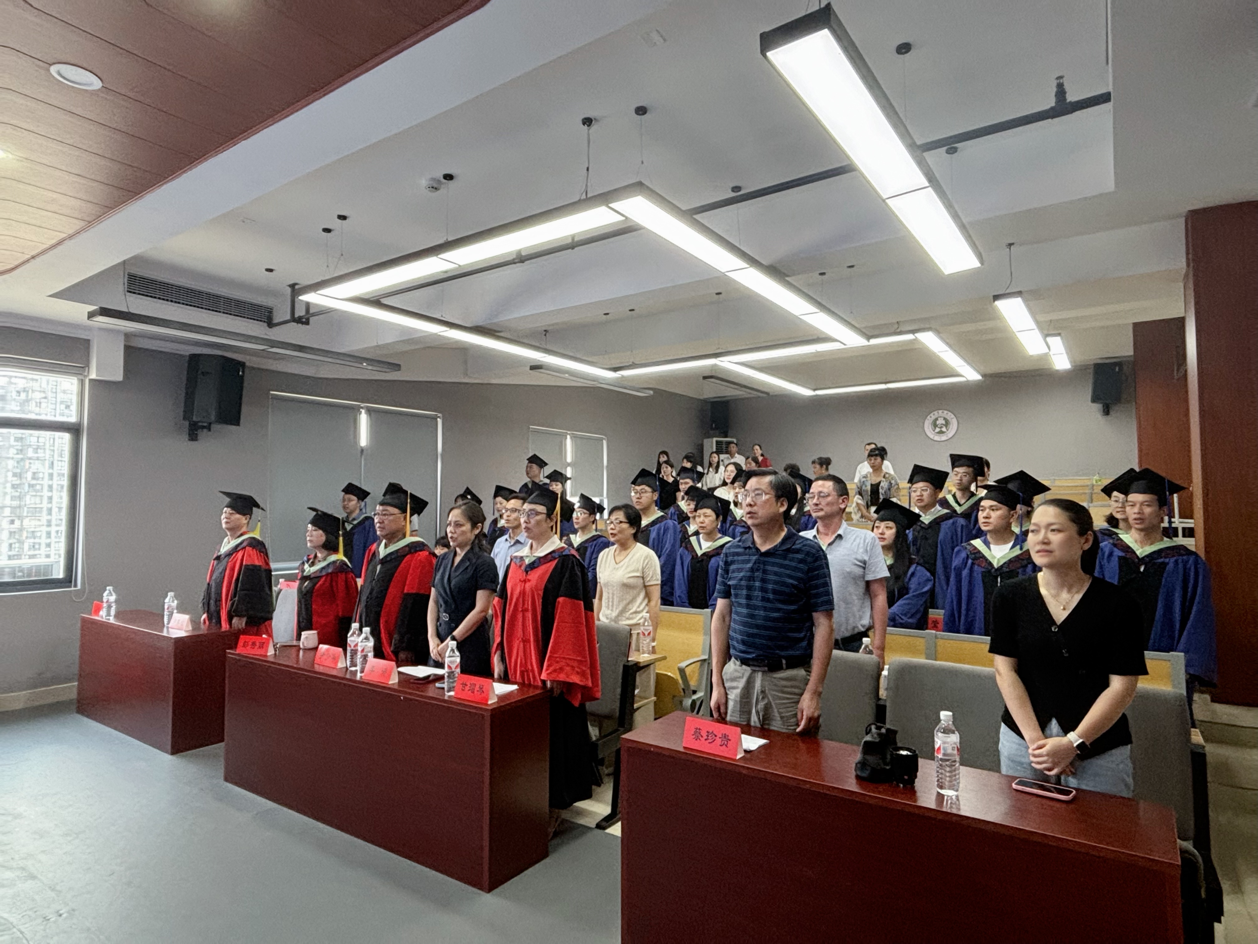 毕业典礼在雄壮的国歌声中正式拉开帷幕,全体师生高唱国歌。