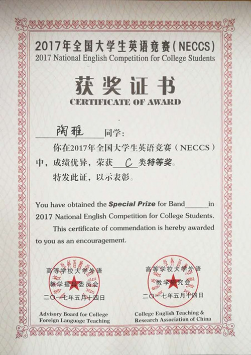 在全国老员工英语竞赛中,公司商公司2016级ACCA一班员工陶雅同学荣获2017年全国老员工英语竞赛(NECCS)C类(非英语专业类)特等奖,15级ACCA员工唐訸荣获一等奖,2016级ACCA二班员工陈贝赳、徐榕泽二位同学荣获二等奖,蔡靖怡、何储杏、黄璐瑶同学荣获三等奖。(撰文/吴友亮)