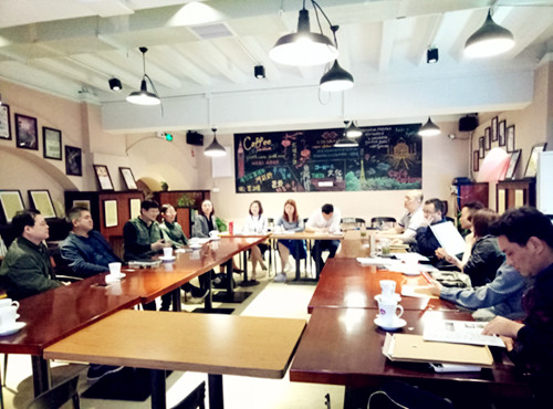 2018年4月9日下午,上海跨境电商联盟(以下简称“商盟”)与公司的合作洽谈会在红楼5语咖啡吧举行。公司人才招聘处副处长潘日鸣、外国语公司党委书记李鹏飞、外国语党委副书记肖兰平、副经理李端阳、计算机公司党委副书记何伟、商公司党委副书记徐钰婷、商盟会长杨明、副会长谭志华、沈跃华、陆慧萍及商盟旗下企业代表参加了此次交流。李鹏飞书记主持本次交流会。