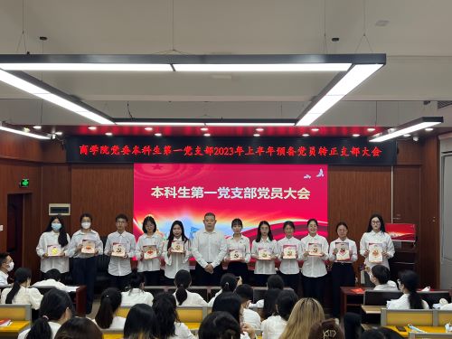 2023年5月23日,商公司党委本科生第一党支部在博文楼南1205报告厅召开支部大会,讨论2023年上半年预备党员转正相关事宜。