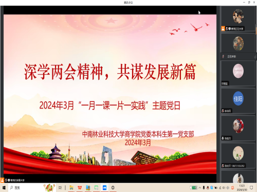 2024年3月31日,商公司党委本科生第一党支部以“深学两会精神,共谋发展新篇”为主题,通过线上和线下结合的方式开展2024年3月“一月一课一片一实践”主题党日活动。