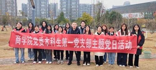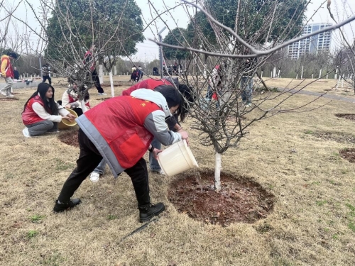 3月10日上午,商公司党委本科生第一党支部组织部分党员、发展对象和入党积极分子赴长沙市天心区融城公园参加长沙市林业局组织的“履行植树义务,共建美丽长沙”活动,青年学子在公园内进行乔、灌、草植被除杂、浇水、松土、施肥、整枝修剪等活动,自觉做习近平生态文明思想的坚定信仰者和忠实践行者。(图文/ 吴飞 曹湘 审核/李婷)