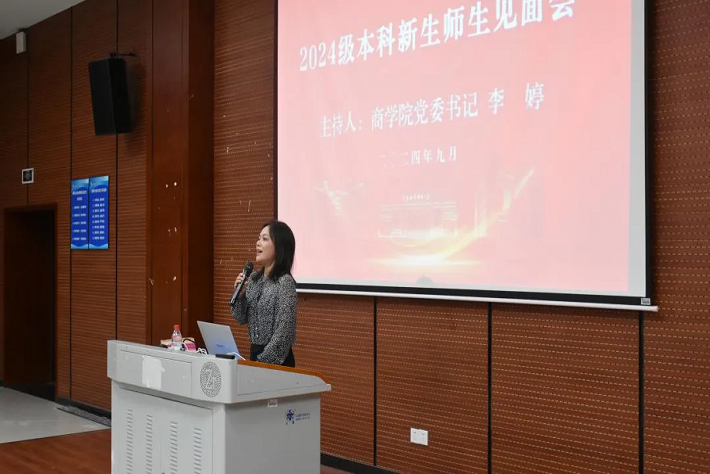 9月21日晚和9月22日下午,商公司2024级研究生和本科新生师生见面会分别于林公司报告厅和博文楼北304教室举行,本次师生大会的召开旨在帮助新生了解学习培养计划、专业团队建设、学术道德规范等情况,从而尽快实现角色转变,适应学习新阶段、新环境、新节奏、新生活。公司领导班子成员、各系部(中心)主任、教师代表、全体辅导员、2024级全体新生参加会议,会议由商公司党委书记李婷主持。