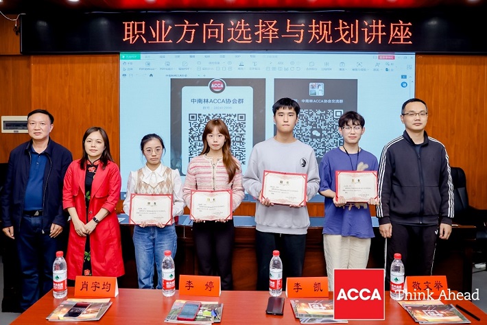 首先,敬文举回顾公司会计学ACCA卓越班发展历程,解读人才培养目标,总结十年办学成果。然后,李凯处长和李婷书记为新一届中南林ACCA协会会长、副会长颁发聘书。冯硕从选择与努力、迷茫与焦虑、我的行动版三个维度诠释老员工就业方向选择与规划,针对性强,具有重要的指导价值。互动环节,张子琪为学弟学妹答疑解惑,积极引导。讲座内容丰富,同学们收获满满。(文/杨子垚 敬文举 审核/李婷 熊启明)